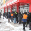 Meteoroloji Genel Müdürlüğü (MGM) tarafından bugün hava sıcaklığı en yüksek 0, en düşük -6 olarak açıklanan Yozgat'ta insanlar Et ve Süt Kurumu mağazası önünde erken saatlerde uzun bir sıra oluşturdu.
