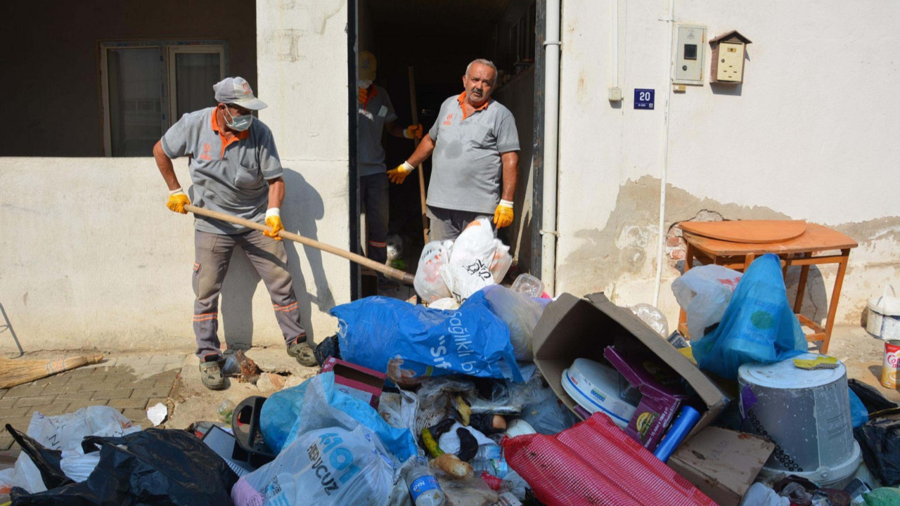 Aydın'ın Nazilli ilçesindeki bir eve ihbar üzerine giden zabıta ekipleri karşısında çöp yığını buldu. Daha önce 9 kez temizlendiği belirlenen evden bu kez 7 traktör römorku dolusu çöp çıktı.