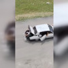 Görüntülerde, otomobilin arka koltuğunda oturanların bulundukları yerde sıkıştıkları için aracın kapısını kapatamadıkları görülüyor.