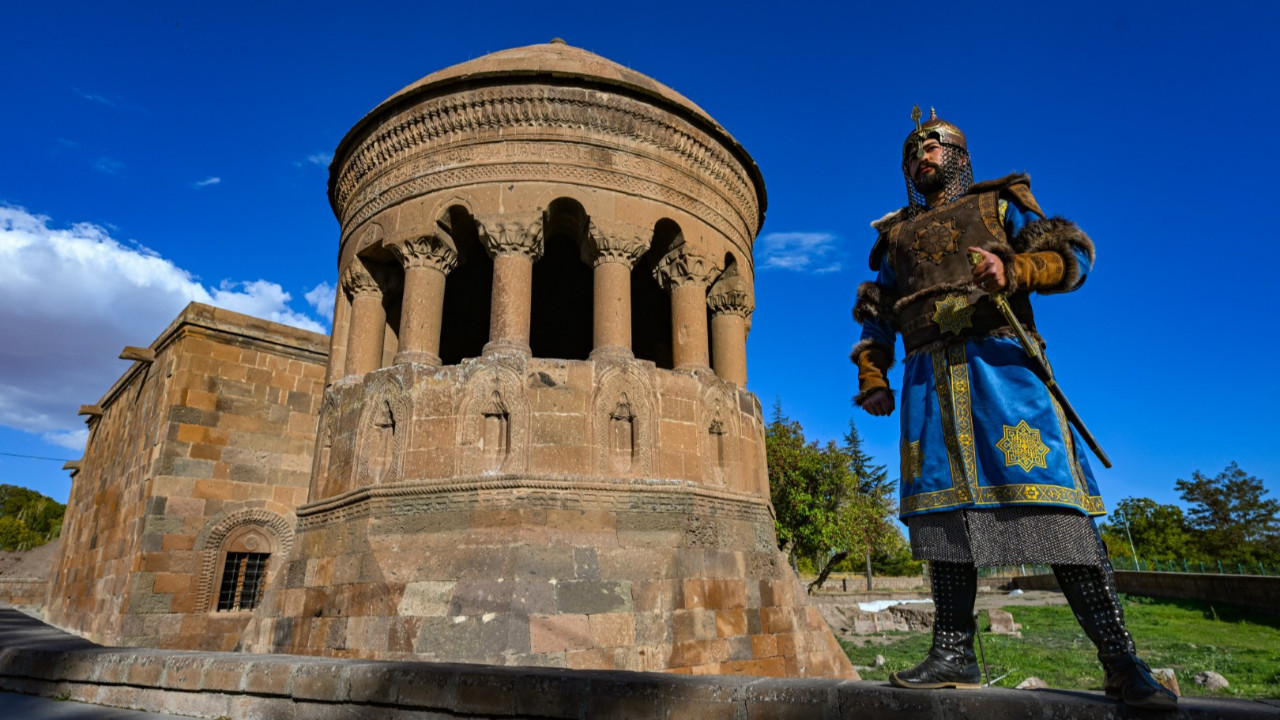 Jandarma personeli Bitlis Ahlat'taki Selçuklu Meydan Mezarlığı'nda saygı nöbeti tutuyor. Selçuklu dönemi kıyafetleri giyerek kılıç ve kalkanlarla nöbet tutan askerler, ziyaretçilere Selçuklu ruhunu yaşatıyor.