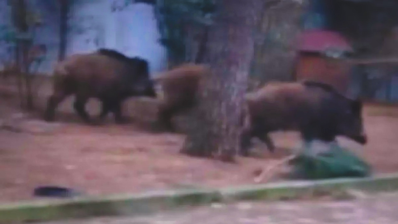 Sakarya'nın Kocaali ilçesinde aç kalan yaban domuzları, ormanlık alandan merkeze inerek ana cadde üzerinde yiyecek aradı.