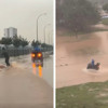 Kamera kaydında vatandaşın, su birikintisi üzerinde bir süre sörf yaptığı görüldü.