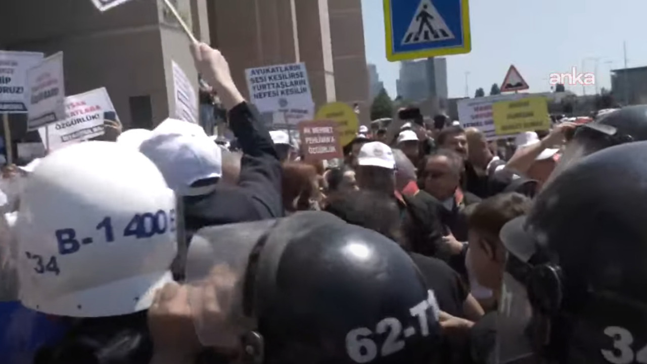 Yüzlerce avukat "Hak, hukuk, adalet" sloganları attı.