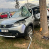 Sürücüsünün direksiyon hakimiyetini kaybettiği otomobil yol kenarındaki ağaca çarparak durabildi. Çarpmanın ardından otomobil adeta ikiye büküldü.