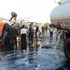 Öte yandan polis ve itfaiye ekipleri de yola dökülen yakıtın alev alma ihtimaline karşı çevrede güvenlik önlemi alarak yoldan geçen sürücüleri sigara içmemeleri konusunda uyardı. Yakıt, itfaiye ve karayolları ekipleri tarafından temizlenerek olası bir tehlikenin önüne geçildi.