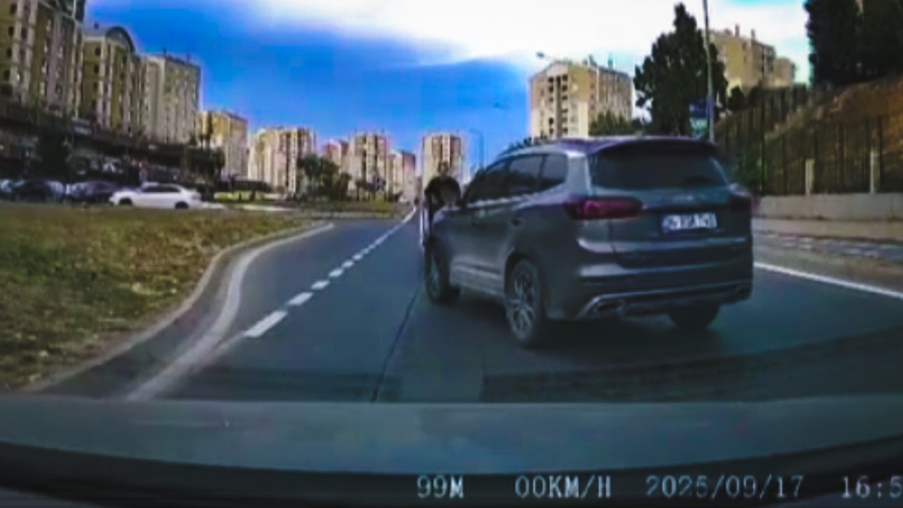 Araçtan inen sürücü öfkeyle diğer araca doğru yöneldiği sırada, direksiyon başındaki sürücü korkarak gaza bastı.