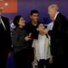 Bu sırada iki liderin talihli ailelerden biriyle yaptığı diyalog dikkat çekti.