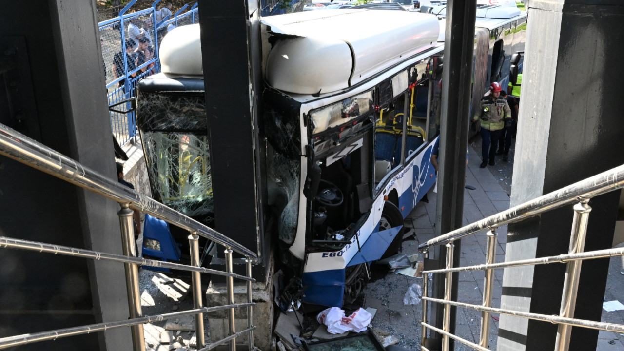 Sürücüsünün ismi öğrenilemeyen 06 DU 8319 plakalı EGO otobüsü, henüz belirlenemeyen nedenle önündeki 06 DL 0736 plakalı hafif ticari araca, ardından da yoldan çıkıp Şehit Erdinç Aydın Üst Geçidi'nin beton bariyerine çarptı.