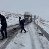 Sürücülerin kendi çabalarıyla yolu kumlayarak araçlarını bulunduğu yerden çıkarmaya çalıştığı görüldü.