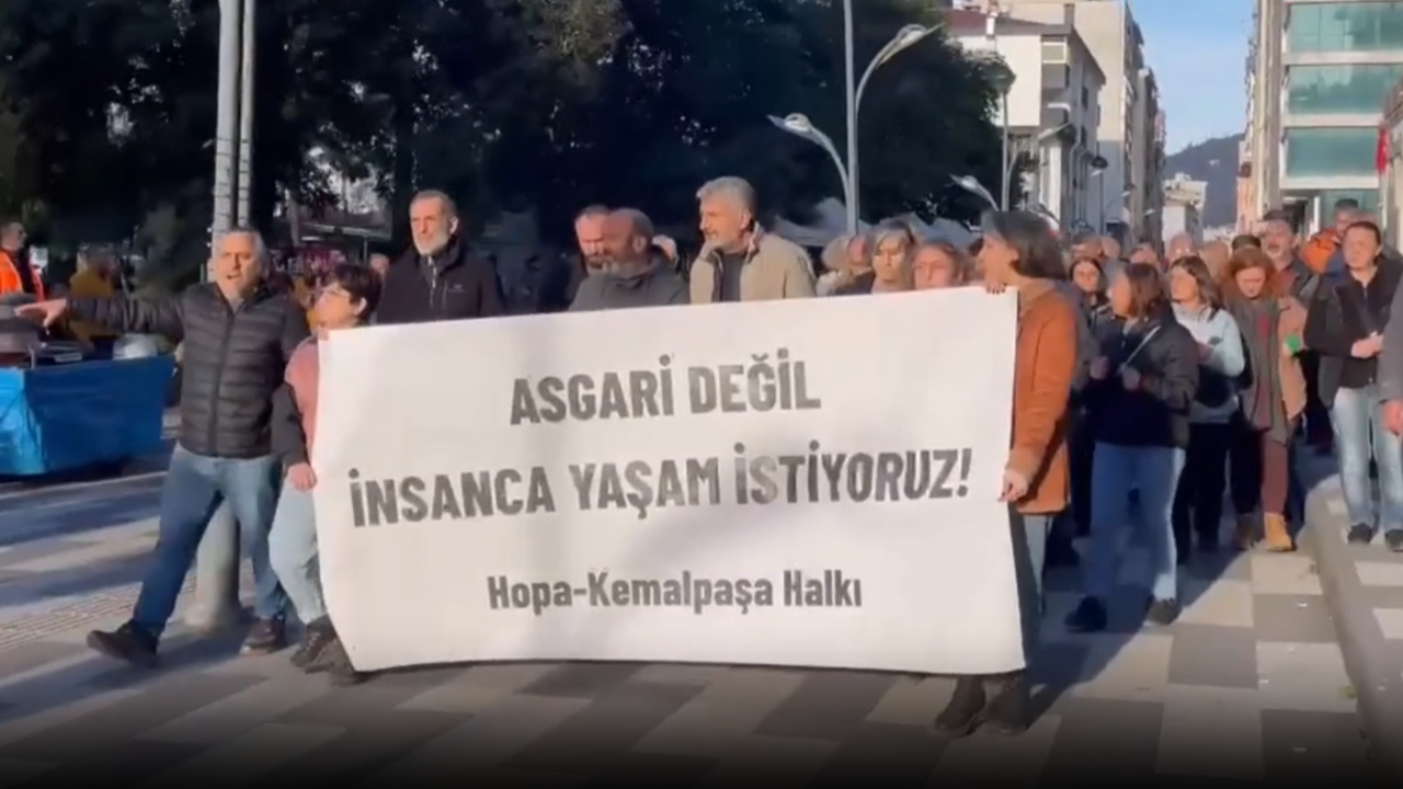 Asgari ücretin 2025 yılı için 22 bin 104 TL olarak belirlenmesinin ardından, Hopalı ve Kemalpaşalı vatandaşlar Hopa parkında bir araya gelerek meydana yürüdüler.