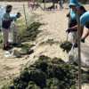 Dalgaların kıyıya taşıdığı yosunlar, tırmık ve küreklerle toplanarak torbalara doldurdu. Günde ortalama 50 tona yakın yosun toplanmasına rağmen deniz yüzeyini saran yosunlar dikkat çekti.