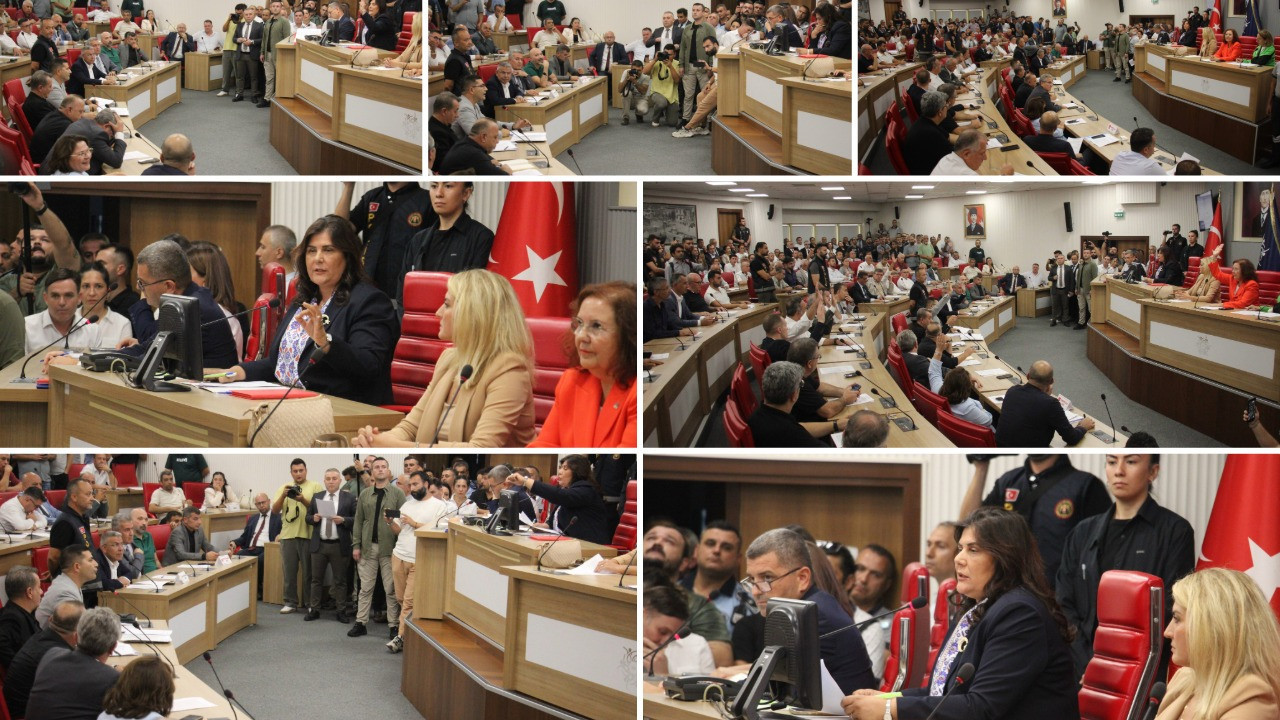 Emniyet ekiplerinin geniş güvenlik önlemleri aldığı meclis salonunda toplantı Aydın Belediye Başkanı Özlem Çerçioğlu'nun yönetiminde başladı. Meclis salonuna önceden girdiği görülen bir grup, Çerçioğlu lehine sloganlar attı.