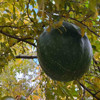 Denizli’nin Buldan ilçesi Turan Mahallesi’nde bahçeye ekilen kabak, nar ağacının tepesinde meyvelerini verdi.