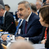 Bakan Fidan, AİHM kararlarının uygulanmasına ilişkin tartışmayla ilgili "Avrupa Konseyi, AİHM meselesi. Onu ayrıca konuşalım. Ama yani elmayla armudu burada karıştırmayalım" ifadelerini kullandı. Fidan, Türkiye'nin AİHM kararlarının gereklerinin neden yerine getirilmediği sorulması üzerine, "Adalet Bakanımız geldi mi buraya? Adalet Bakanımız ile konuştunuz mu" karşılığını verdi.