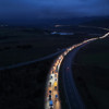 Bayram süresince yüz binlerce aracın geçtiği güzergâhta oluşan yoğunluk drone ile havadan da görüntülendi.