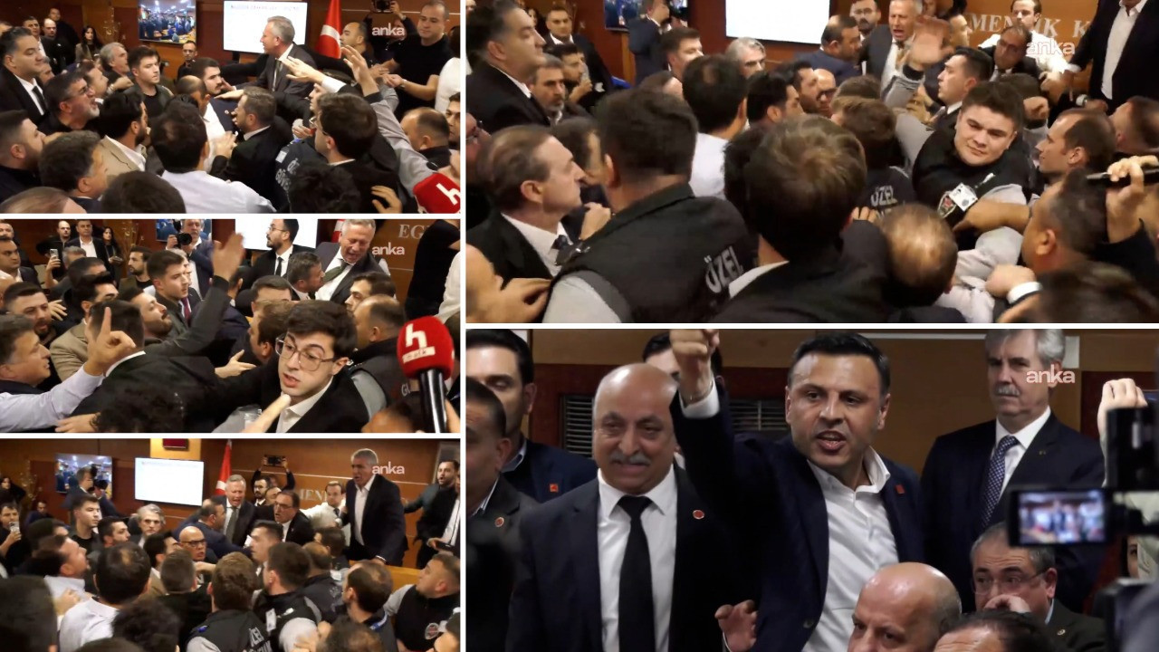 AKP’li ve CHP’li meclis üyeleri arasındaki gerginliğin tırmanması üzerine salona özel güvenlik ekipleri girdi. Kürsü önüne kadar taşan tartışma, zaman zaman arbedeye dönüştü.