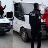 Baruthane Mahallesi Ezine Sokak’ta hayvanların toplanmasına tepki gösteren bir kadın, ekipleri engellemek için belediye zabıta aracının üzerine çıktı.