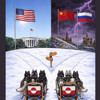 Görselde Grönland'ın seçebileceği sol taraftaki yol güneşli ve açık bir gökyüzü altında, Beyaz Saray'a ve dalgalanan ABD bayrağına çıkarken; sağ taraftaki yolun fırtınalı ve karanlık bir gökyüzü altında, Çin ve Rusya bayrakları ile bu ülkelerin simgelerine (Çin Seddi ve Aziz Vasil Katedrali) doğru uzandığı görüldü.