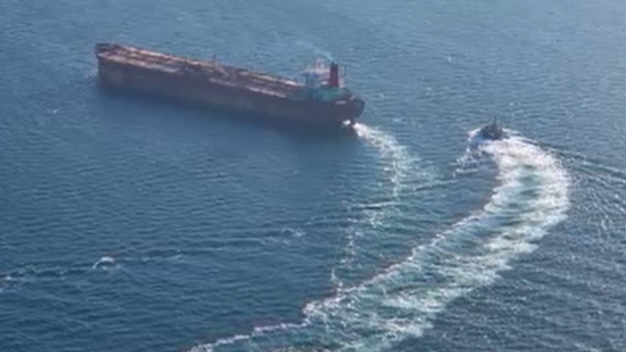 Petrol tankerine müdahale anları ise havadan görüntülendi. Görüntülerde, sahil güvenlik botları ve römorkörlerin gemiye yanaştığı anlar yer aldı.