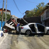 Kontrolden çıkan çekici, önce park halindeki araca çarptı. Ardından bir apartmanın balkon ve merdivenine vuran çekici, çarpmanın şiddetiyle bu kez arkasından gelen Mustafa Safran idaresindeki aracı sürükledi.