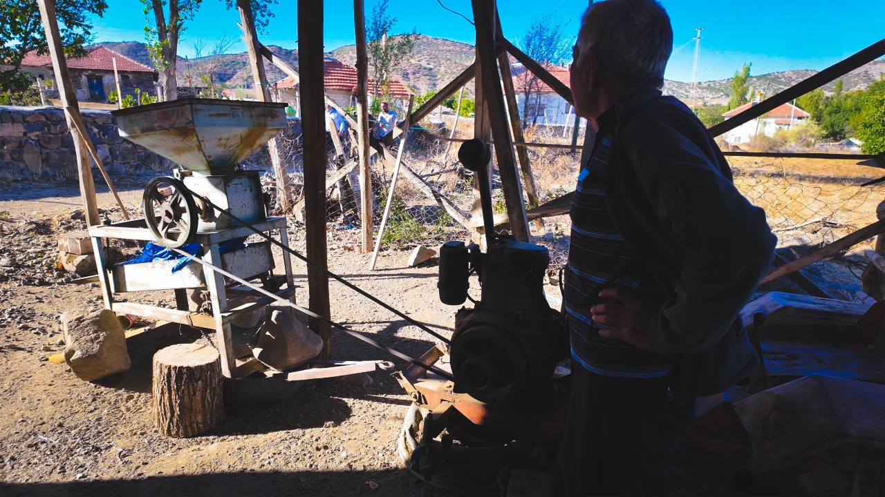 "Böyle yününü kıbleye döndürdük duruyor. Hiç bulgur çektiren yok. Bulgur kaynatan yok. Benim mesleğim çiftçilik. Çiftçilikten sonra bunu aldım, bayağı iyi o zamanlar 1982’de, köylerden gelirler, köylere giderdik. Mesleğim de var, elektrikçiyim, kaynakçıyım. Onlar da bitti, hiçbir şey yok. Aha şöyle duruyoruz Allah'a dua ediyoruz.