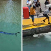 Bodrum Liman bölgesinde öğle saatlerinde nesli tükenme tehlikesi altında olan bir mavi yelken balığı kıyıya yaklaştı Bu sırada balığı fark eden H.A., elindeki zıpkınla vurdu.