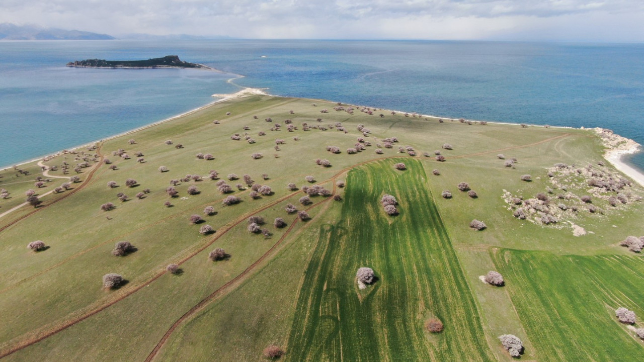 Van Gölü'nün kuzeydoğu bölgesinde yer alan ada, ilkbaharla farklı bir güzelliğe büründü.