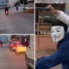 Antalya'da, ünlü hacker grubu Anonymous'un kullandığı maskeleri takan 2 genç, motosikletle seyir halindeyken oyuncak silahlarla korku saldı.