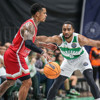 Maça iyi başlayan yeşil-beyazlı ekip, ilk periyodu 23-20 önde kapattı. Ancak konuk ekip ikinci çeyrekte dengeyi kurdu ve soyunma odasına 38-37 üstün girdi.