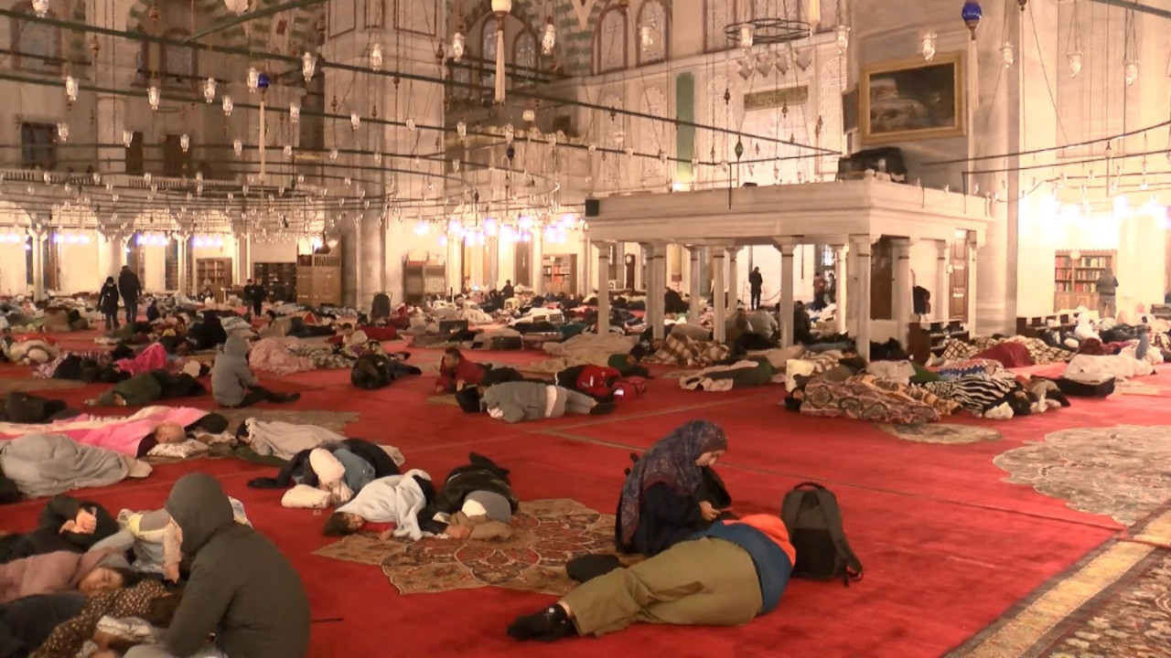 İstanbul'da merkez üssü Marmara Denizi Silivri açıkları olan 6,2 büyüklüğündeki depremin ardından evlerine girmek istemeyen bazı vatandaşlar, geceyi Fatih Camisi'nde geçirdi.