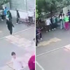 Ev sakini kadın da taşların evinin camına geldiği gerekçesiyle çocuklara bağırarak tepki gösterdi. Kadın şahıs kısa süre sonra okulun bahçesine girip çocuklara doğru yöneldi.