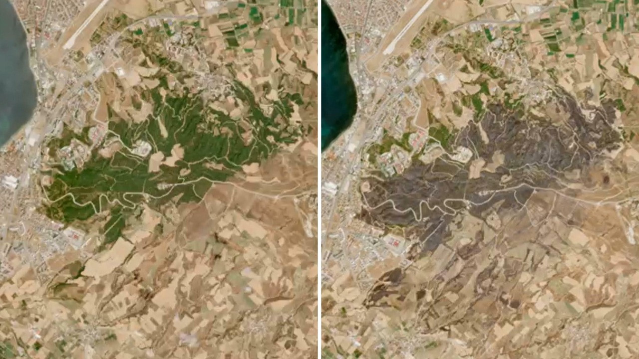 Çanakkale yangınlarının zararı uydu fotoğraflarında