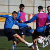 Antrenman, dar alanda çift kale maç ile tamamlandı. Tedavisi devam eden Eray Korkmaz, fizyoterapist eşliğinde takımdan ayrı çalıştı.