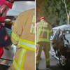 Otomobilde bulunan sürücü B.G. ile yolcu İ.E. araç içinde sıkıştı.