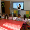 O şekilde çocuklarla oyun oynatıyoruz, gerekli gelişim seviyelerine, yaş seviyelerine uygun bir şekilde çocuklara etkinlikler yaptırıyorum. Kendi öğrencilik yıllarım aklıma geliyor. Hem anaokulumu hem de ilkokulumu burada okuyup kendi ilkokul öğretmenim ile aynı mesleği yapıyor olmak benim için çok gururlu bir şey."