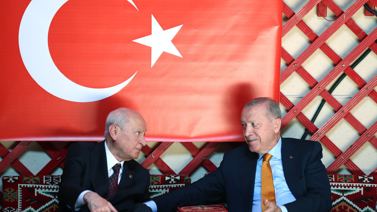 Ardından Erdoğan ve Bahçeli bir süre etkinlik alanında baş başa görüştü.