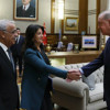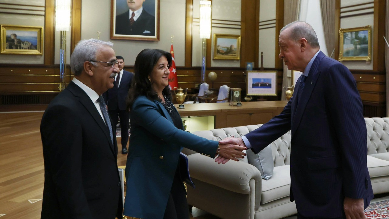 Cumhurbaşkanı Recep Tayyip Erdoğan, DEM Parti İmralı heyetinde yer alan TBMM Başkanvekili Van Milletvekili Pervin Buldan ve Urfa Milletvekili Mithat Sancar ile Cumhurbaşkanlığı Külliyesi'nde bir araya geldi.