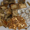 Dağcılar kutunun içinde ince siyah bir kumaşa sarılmış ve 11 ayrı desteye ayrılmış 600 altın sikke olduğunu gördü. Yakınlarda bu kez demirden ikinci bir kutu bulan dağcılar, içinde 16 tütün tabakası, 10 bilezik, bir tarak ve bir zincir buldu. Bu eşyaların bileşimi henüz analiz edilmeyen sarı bir metalden yapıldığı belirtildi.
