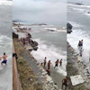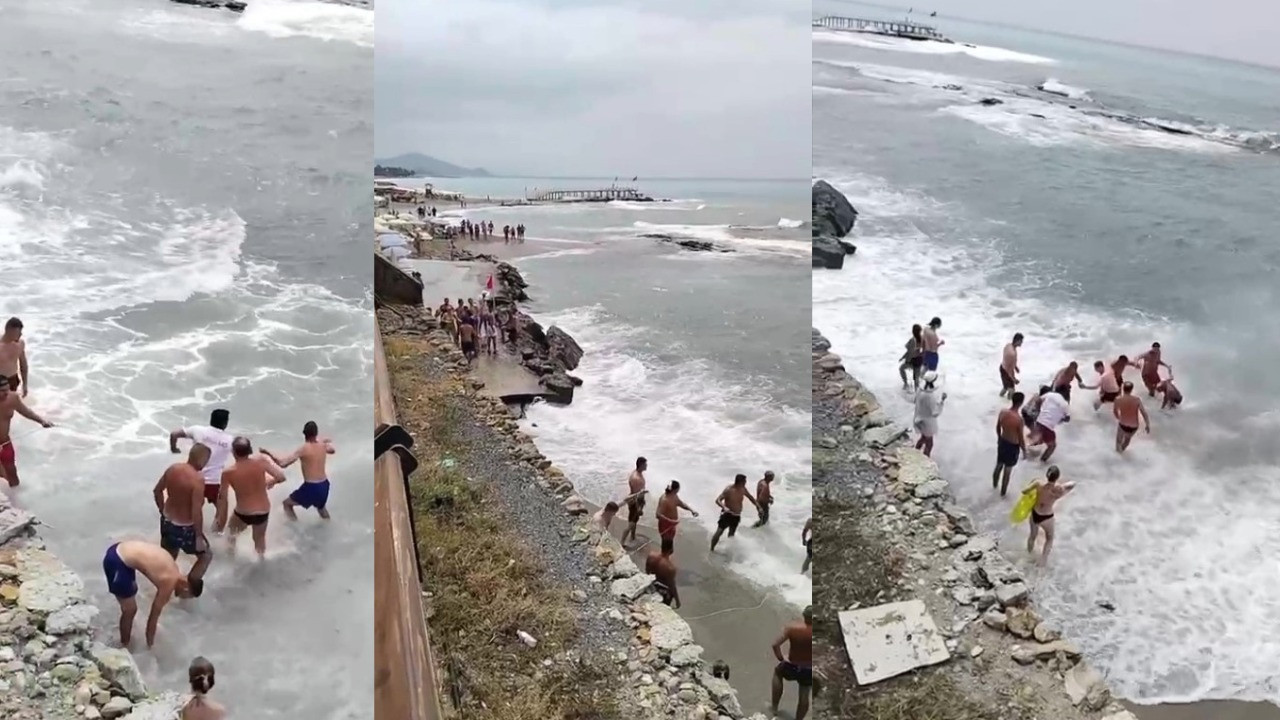 Sahile vuran dalgaların kuvvetli olması nedeniyle zorluk çeken genç can simidine bağlı olan halat sahilde bulunan vatandaşlar tarafından oluşturulan insan zinciri ile genç kurtarıldı.