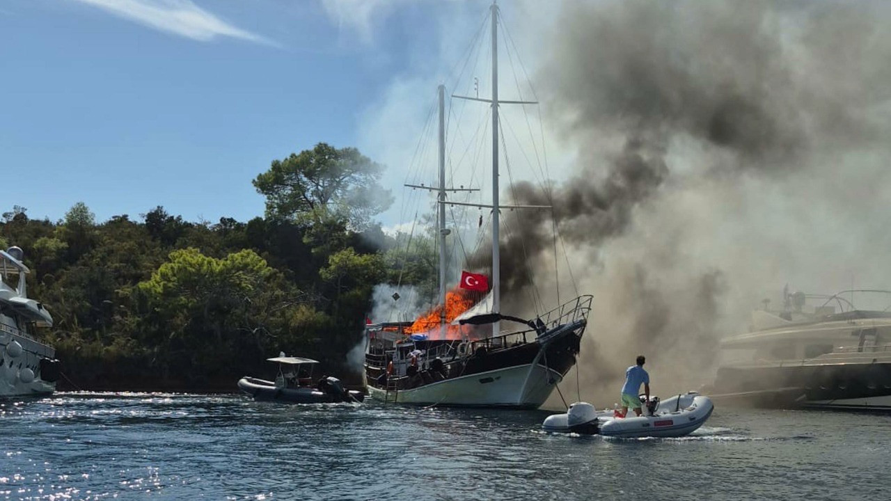 Muğla açıklarındaki bir gulet teknede yangın çıktı.