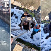 Artvin’in Kemalpaşa ilçesinde Çam Deresi'ne düşen bir karacayı fark eden vatandaşlar itfaiye ekiplerine haber verdi. İhbar üzerine olay yerine sevk edilen Kemalpaşa İtfaiye ekipleri, karacayı bulunduğu yerden kurtarmak için çalışma başlattı.