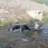 Erzurum'un Karayazı ilçesinde bir otomobil dereye uçtu.