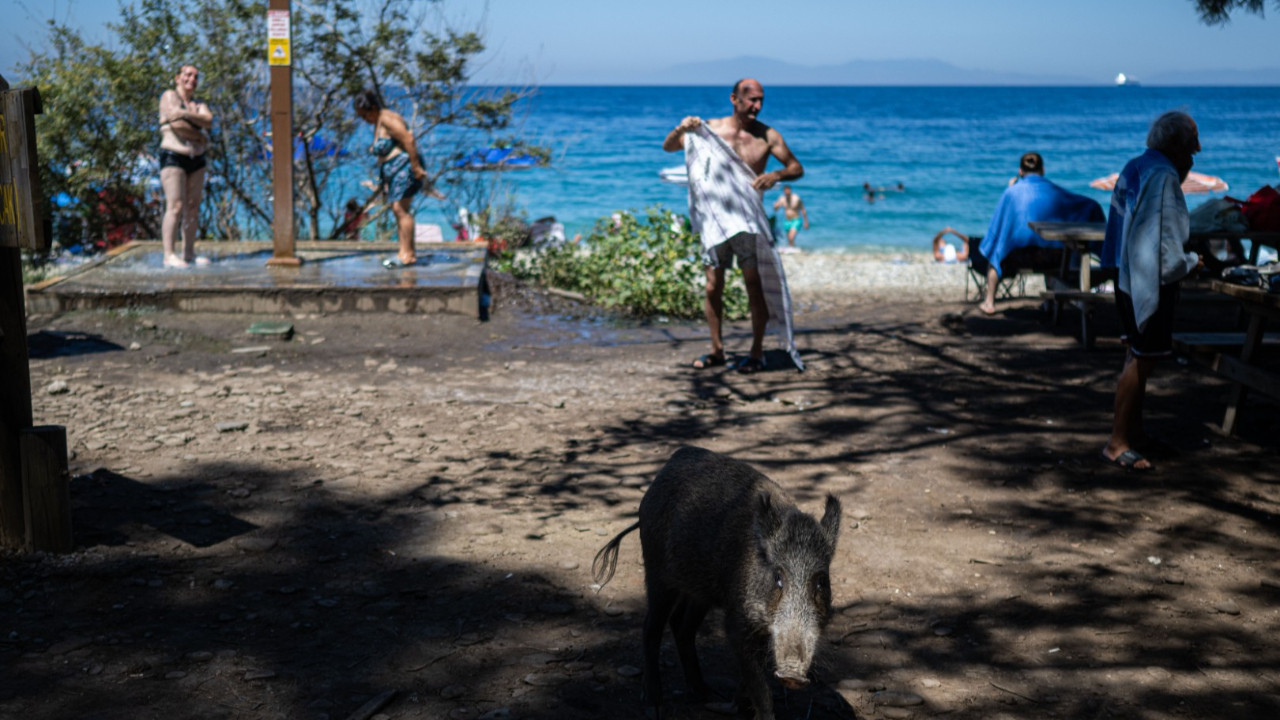Aydın'ın Kuşadası ilçesinde bulunan Dilek Yarımadası Büyük Menderes Deltası Milli Parkı'ndaki koylara domuzlar indi.