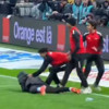 Ancak bazı top toplayıcılar havluyu almakta ısrarcı oldu. Bir görüntüde Diouf’un yere düşürüldüğü, hatta çimlerin üzerinde sürüklendiği anlar net şekilde görüldü.