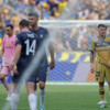 Köşe vuruşu sonrası Di Lollo kafayı vururken direkten dönen topu kaleci Nathan Garrow çekmek istedi ancak başarılı olamadı ve top filelerle buluştu. Sarı-Lacivertliler üst üste girdiği pozisyonları değerlendiremedi ve ilk yarı 1-0 tamamlandı.
