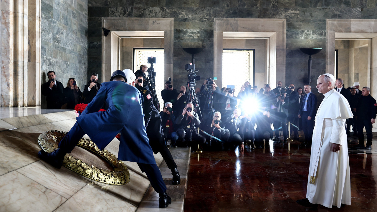 Papa, Aslanlı Yol'dan yürüdükten sonra Gazi Mustafa Kemal Atatürk'ün mozolesine çelenk bırakarak saygı duruşunda bulundu.