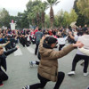 Yürüyüş öncesinde konservatuar bölümü öğrencileri zeybek gösterisi yaptı.