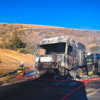 Hatay'ın Belen ilçesi Topboğazı mevkiinde seyir halindeyken yanmaya başlayan tır, kısa sürede alevlere teslim oldu.