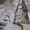 Oluşan yoğunluk dronla görüntülendi. Yaklaşık 9 saat süren bekleyişin ardından kapıların açılmasıyla birlikte vatandaşlar markete girdi.
