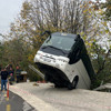 Otobüsün arka tekerlekleri toprak zemine değerken, ön kısmı havada kaldı. Kazada yaralanan olmazken ihbarla bölgeye jandarma ve itfaiye ekipleri yönlendirildi.